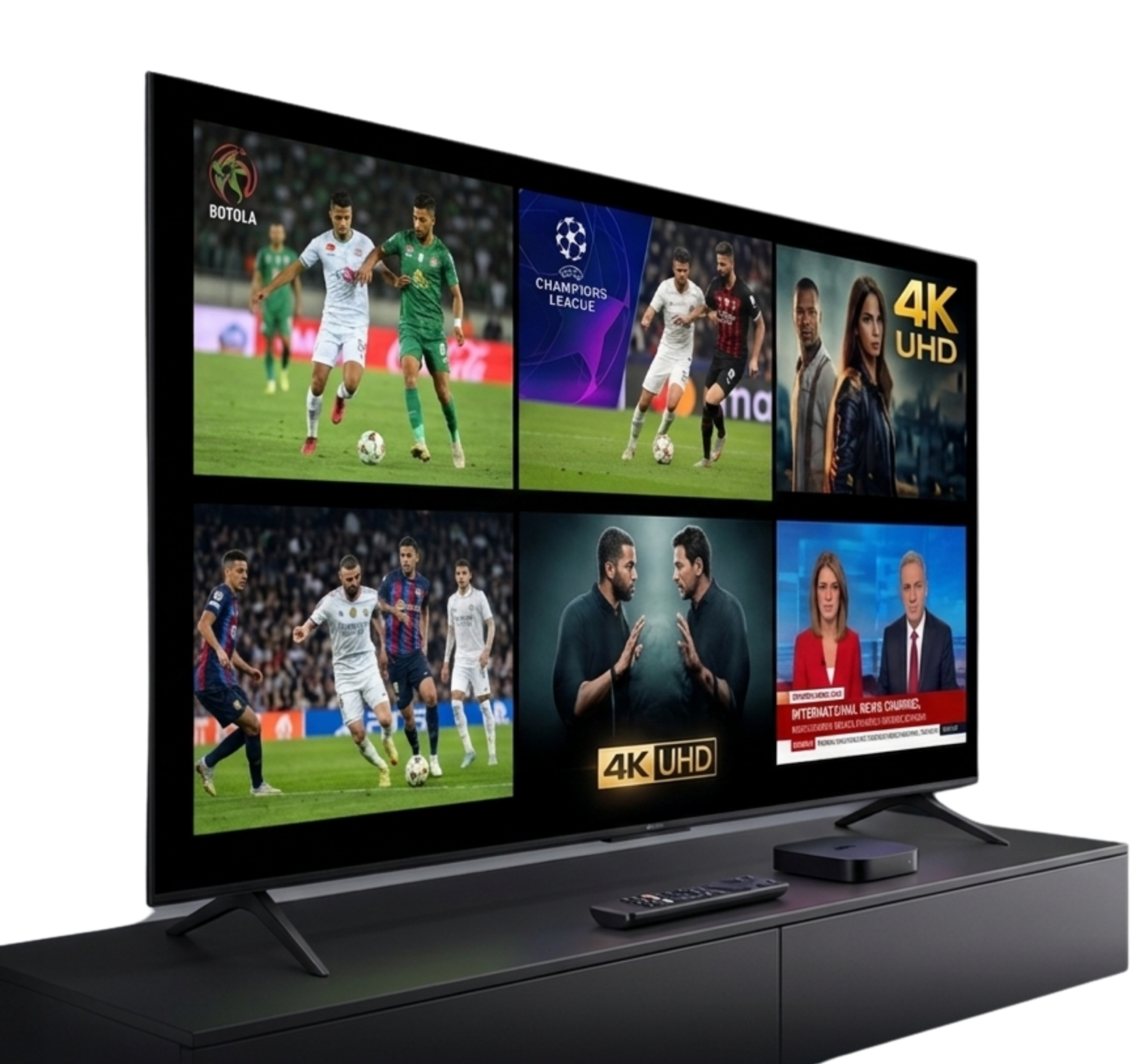 Serveurs haute stabilité (Smart X2, King Pro, SubTV). Accès direct à la Botola, Champions League et un catalogue VOD illimité. Compatible Smart TV, Android et iOS.